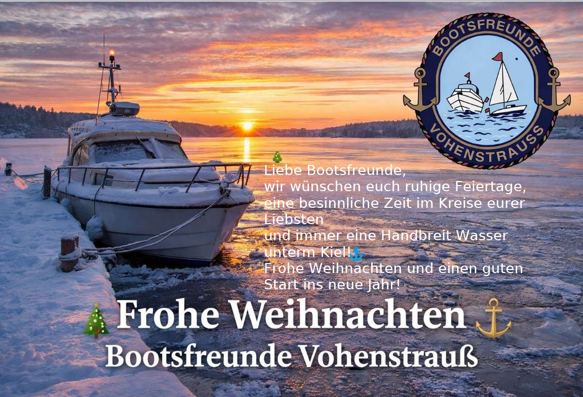 Hallo liebe Bootsfreunde, wir wünschen euch allen ein frohes und besinliches Weihnachtsfest und viel Glück und Gesundheit für das Jahr 2024